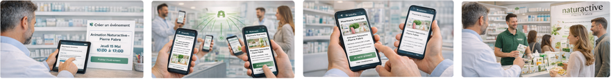 L’événement est immédiatement communiqué à l’ensemble des clients inscrits avec l’identifiant de la pharmacie, directement sur leur smartphone.
